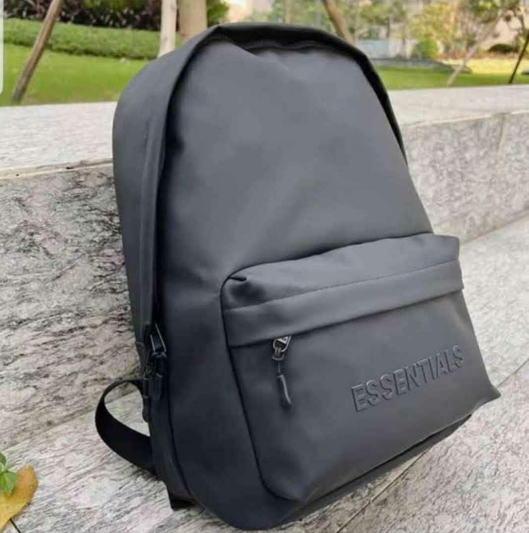 Les sacs à dos essentiel se distinguent par leur design minimaliste et contemporain, avec le logo de la marque mis en évidence de différentes manières. La collection comprend plusieurs couleurs, notamment un sac entièrement gris foncé, un noir et blanc cassé, un autre noir avec le logo sur le dessus, et un modèle bicolore en gris foncé et bleu clair. Ces sacs semblent conçus pour un usage quotidien, alliant style et simplicité.